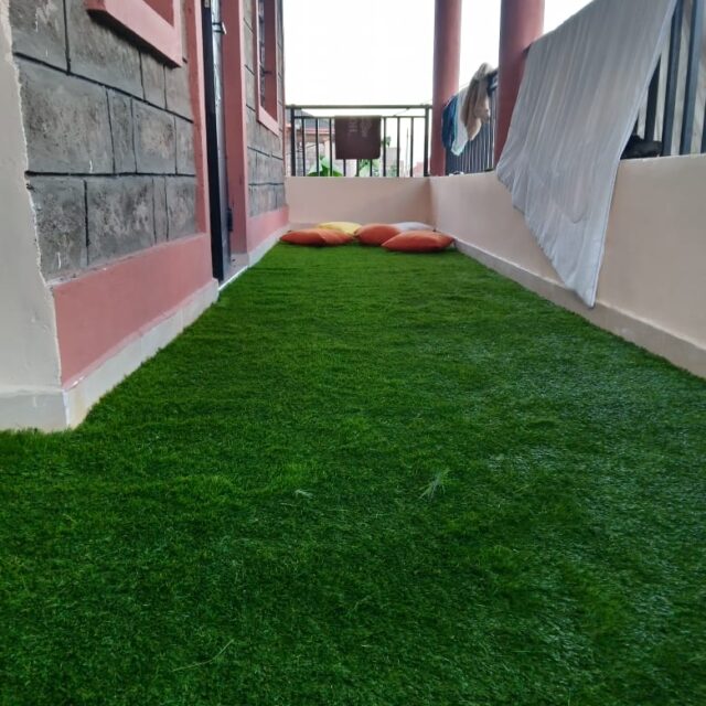 - Efficient Water Drainage: Most artificial grass carpets are designed with built-in perforations or a backing that allows water to drain through easily. This prevents pooling and makes it ideal for outdoor areas where rainwater might otherwise accumulate.